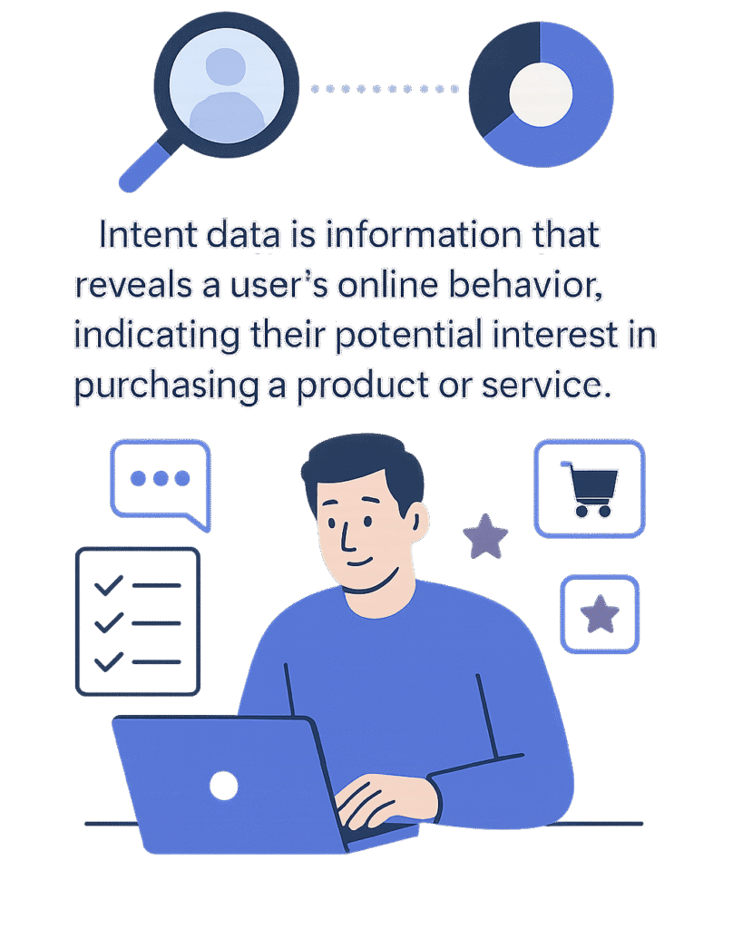 Intent data is behavioral information collected about business professionals or companies that signals their likelihood to purchase a product or service. It tracks the digital breadcrumbs that prospects leave behind as they research online—revealing who’s actively in the market for what you sell.